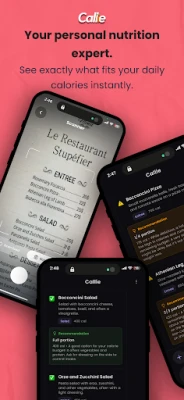 Kas olete väsinud toiduvalikute pärast muretsemisest ja hilisematest kahetsustest? Tutvustame Calliet, revolutsioonilist tehisintellektil põhinevat toitumisnõustajat, mis annab teile kohese ja isikupärastatud nõuande *enne*, kui hammustust võtate. Erinevalt tavalistest kalorilugejatest ei sunni Callie teid tagantjärele analüüsima – see juhendab teid ette, aidates teha tarku otsuseid reaalajas ja ennetavalt. Lõppegu ebakindlus ja alaku toitumisteekond, mis on täis teadlikke valikuid ja edusamme.