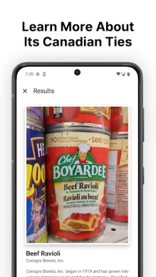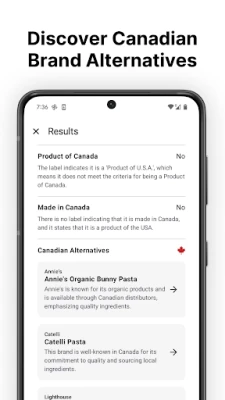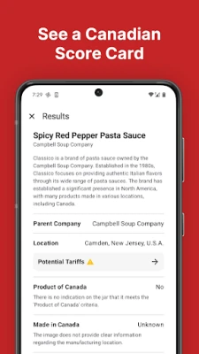 Kuidas Maple Scan teid aitab? Lihtsalt suunake oma kaamera toote etiketile ja laske Maple Scan'il töö teha. Hetkega saate ülevaate toote päritolust ja omandiõigusest. Kui toode ei ole täielikult Kanada päritolu, pakub Maple Scan koheselt välja soovitusi kohalike alternatiivide kohta, aidates teil leida Kanada tooteid, mis väärivad teie tähelepanu. Lisaks saate teavet imporditud kaupade tariifide ja erimaksude kohta ning sukelduda brändide ajalukku, jälgides nende arengut asutamisest omandamiseni.