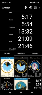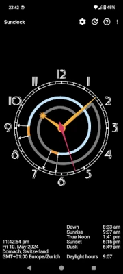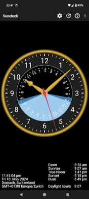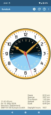 Sunclock on astronoomiline kell, mis kuvab lisaks kodanikuajale ka päikesetõusu ja -loojangu ning videviku erinevate faaside aegu. See pakub teile täpset ülevaadet päeva loomulikust kulgemisest.